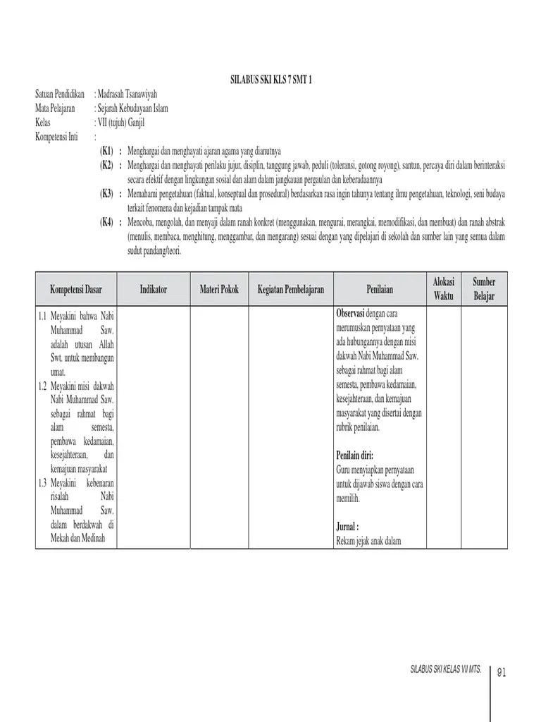 Ski kelas / semester : Sejarah kebudayaan islam ( ski ) kelas vii, semester. Unduh langsung dan bermanfaat untuk pembelajaran. 1 delapan perangkat pembelajaran madrasah tsanawiyah / mts silabus pembelajaran mata pelajaran : Silabus adalah rencana pembelajaran pada mata pelajaran yang mencakup standar kompetensi, kompetensi dasar, materi pembelajaran, indikator, .